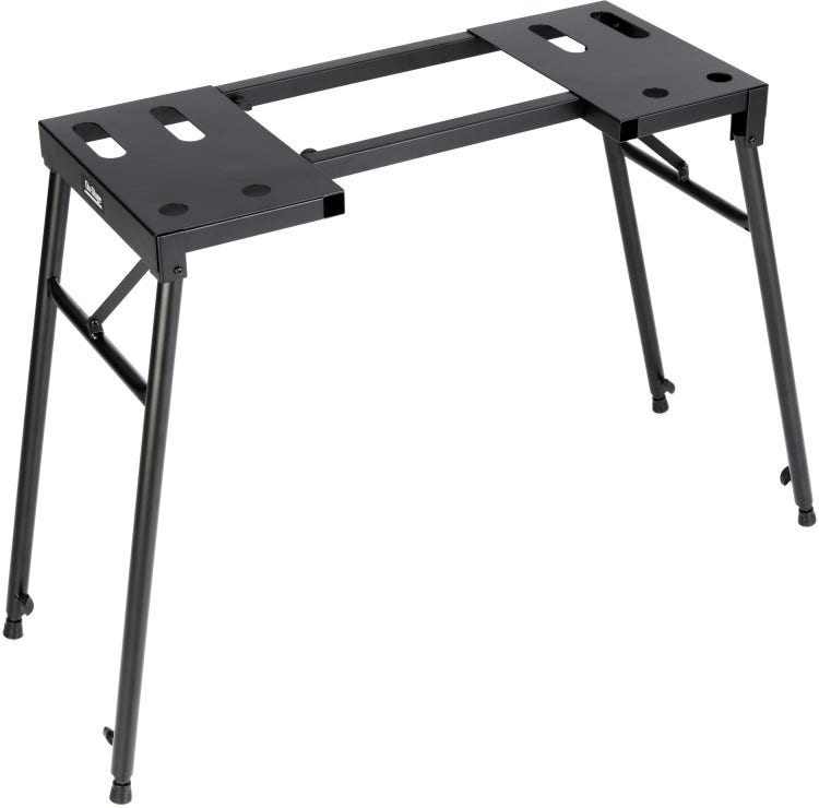 These are great, portable, sturdy, adjustable stands. I stick a few of those adhesive rubber feet on mine to keep the steel in place/prevent scratching.